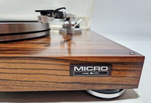 Tekoop een zeer gave Micro Seiki BL-71 deze is in zeer mooie staat en speelt echt super! Heeft de orginele stofkap nog met lichte gebruikerssporen maar geen barsten. Er is een nieuwe transvormator 230v in gemaakt en volledig getest en afgesteld ( draait mooi stabiel op 33,33 en 45 toeren). Heeft een klein plekje van een sticker zie de foto’s. Wordt geleverd met een standaard element.